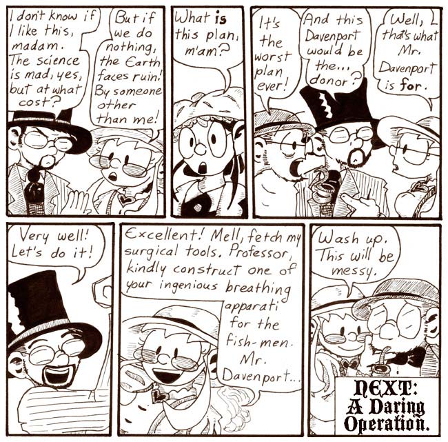 The nature of Victorian Helen’s plan isn’t revealed until the next chapter, which, fortunately, I only waited a few weeks before drawing. It could’ve been much worse.