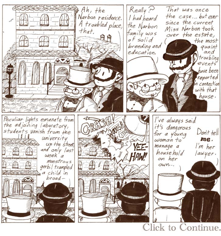 This page is based on the opening chapter of Dr. Jeckyll and Mr. Hyde. That’s how it starts–with Dr. Jekyll’s lawyer talking to another stuffy Victorian fellow about the odd goings-on at the Jekyll residence. Enjoy my hilariously bad backgrounds!