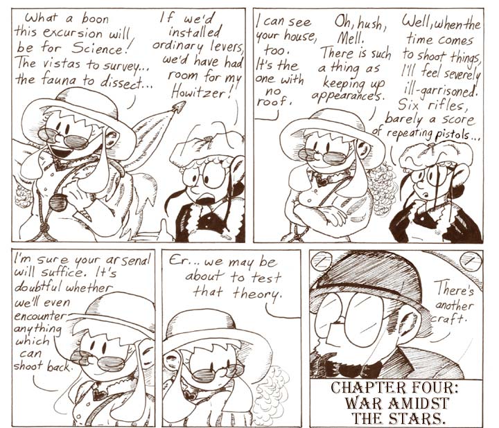 2. War Amidst The Stars“. I’ll never forgive you for that one. (And not just because the upcoming chapter marks the point where the “Le Voyage dans la lune” aspect of this arc Went Wrong.)