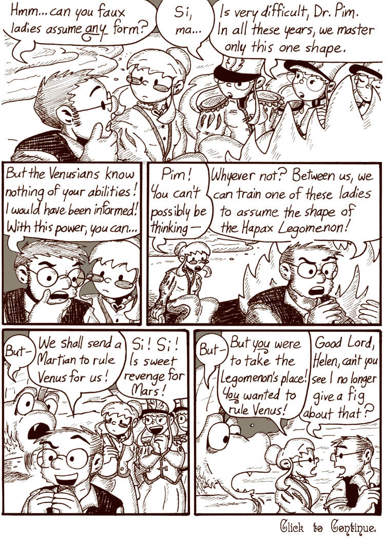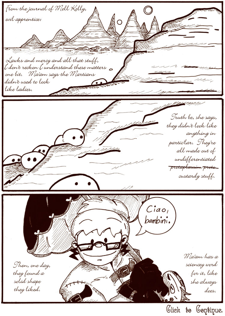 I really enjoyed drawing Victorian Dr. Narbon. Check out her iguana-headed parasol, intended as a weird nod to Mary Poppins.