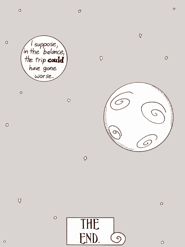 I drew him upside-down in the first panel because it was the only way to fit the caption box and word balloons, but it turned out pretty nicely.