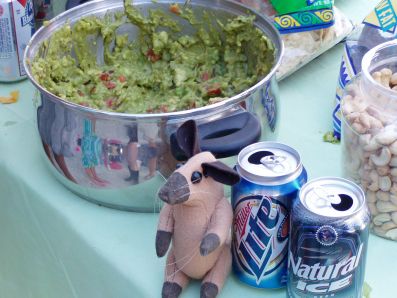 The guacamole was provided by strangers down the street–they came running along shouting, “Guac party! 30 minutes! come come come!” Being well-organized nutjobs, they’d brought four cases of avocados. It was mighty tasty.