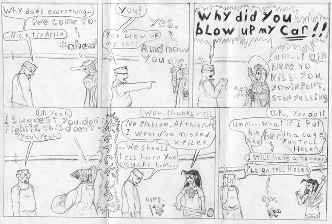 Much, much later in Narbonic, Artie is better equipped to beat up Dave, but never does. Another opportunity lost.