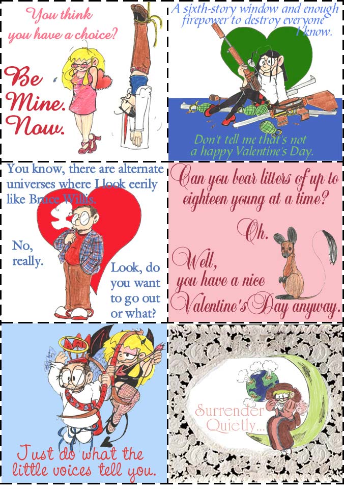 And yeah, that upper-right valentine kinda got pre-empted by invasions of madness into the Real World. (TM).  I wonder what it means that I thought first of the Washington-DC snipers, instead of the Vermont or Colorado students?