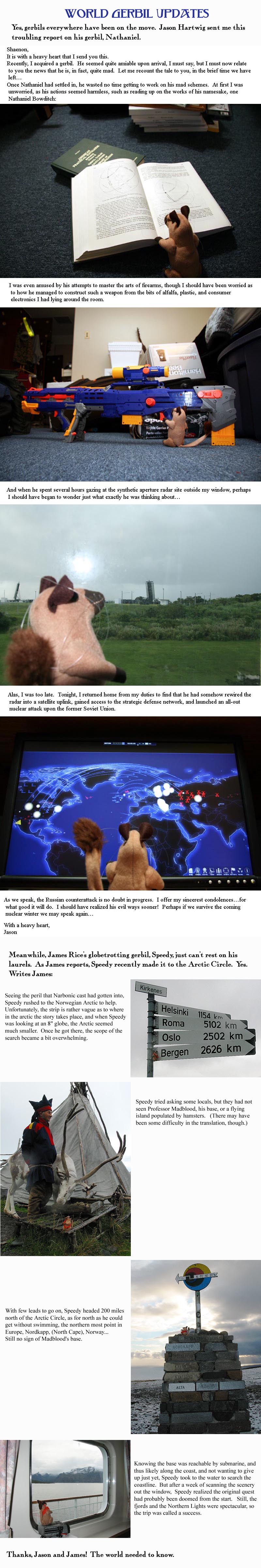 I was all set to get all misty-eyed over posting the last set of gerbil photos, but then I looked at the archives and there’s two more gerbil updates after this one. Dag, that’s a lot of gerbil photos. These are extremely good ones, though.